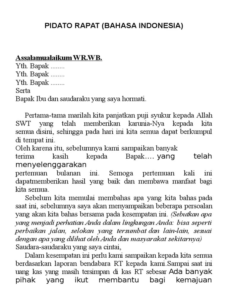 Contoh teks naskah pidato kata pengantar sambutan ketua rt dalam rapat 1.